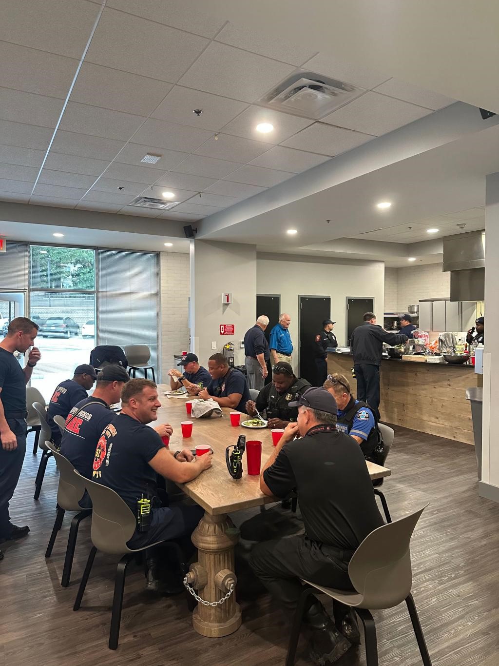 Our club provided dinners on three separate evenings to the first responders (fire fighters, police and paramedics) of Sandy Springs. We served well over 100 first responders (some more than once!!) over the three evenings. Three different restaurants and a local grocery store provided the food, while our club volunteers served as host and servers to our first responders.