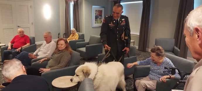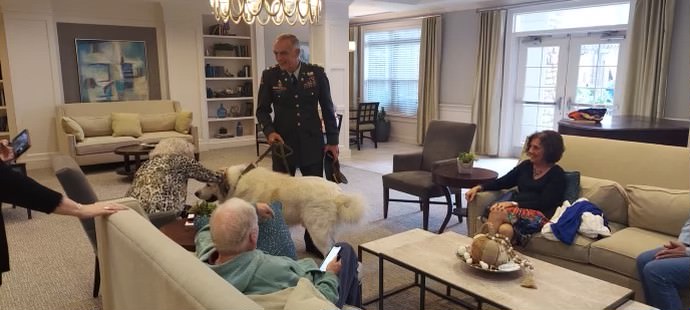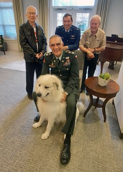 Our club presented a Veterans Day event at Somerby's Assisted Living and Memory Care facility in Sandy Springs. Army ventary Tom Arial who is the Commander of the VFS Sandy Springs Chapter with therapy dog Normandy. 34 residents plus staff attending his conversation about WWII and the work of the VFW. Normandy was a big hit with the residents. Lunch was provided to the residents.